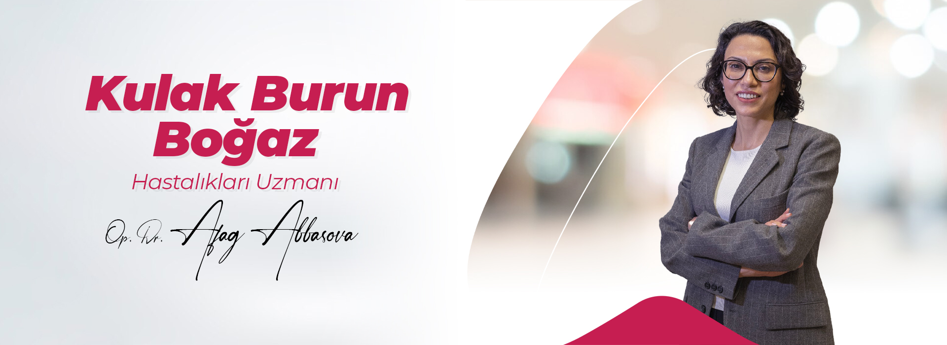 Op. Dr. Afag Abbasova, Azerbaycan Tıp Üniversitesi'nde eğitimini tamamlamıştır. Kariyeri boyunca, birçok kulak burun boğaz rahatsızlığında çalışmalar yapmıştır.